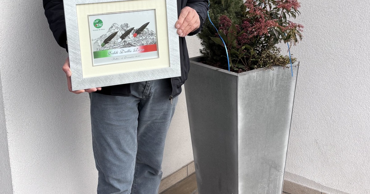 Sabato 13 dicembre, in occasione della 16a edizione del Premio “La Penna Alpina per la nostra Montagna”, il signor Eddi Dalla Rosa è stato insignito dalla sezione A.N.A. di Feltre.
